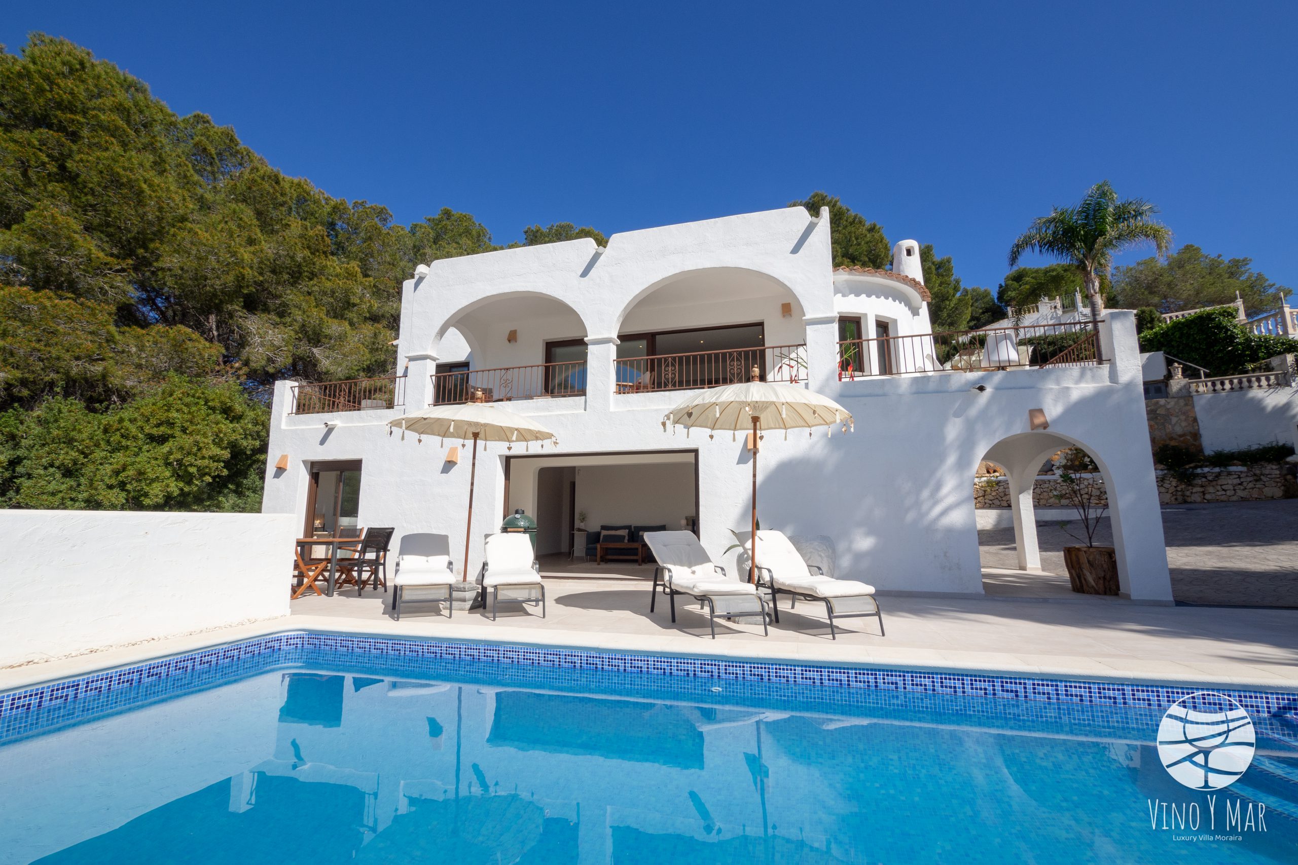 Wij bieden u een luxueuze privé villa bestaande uit 2 verdiepingen, gelegen in het mediterraanste klimaat van Moraira. De uitstraling van de villa is licht en helder, modern van karakter, en van alle gemakken voorzien. De villa heeft een totale renovatie ondergaan zonder zijn typerende Spaanse karakter te verliezen. De typische Ibiza stijl geeft het huis een gemoedelijke sfeer en comfortabel gevoel. Doordat het wat hoger op de berg ligt geniet u vanuit alle vertrekken van de prachtige vallei en de verre zeegezichten.